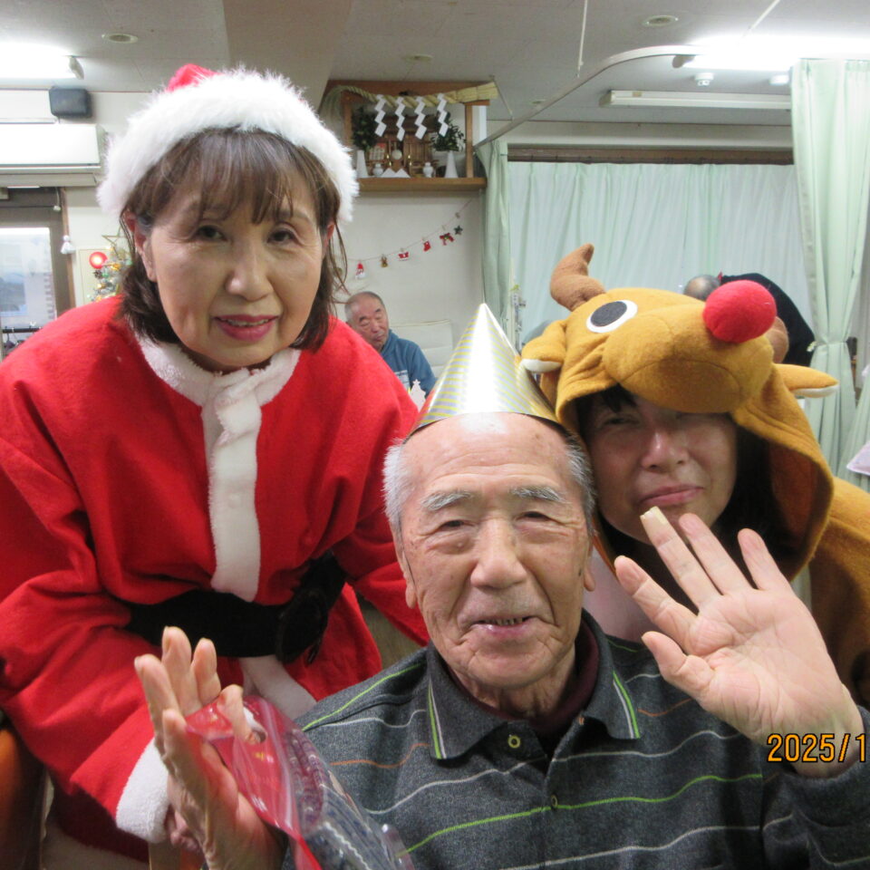 デイ行事クリスマスが今年もやってきました! サンタとトナカイもやってきてくれました! ビンゴゲームでは豪華(?)景品もプレゼント!